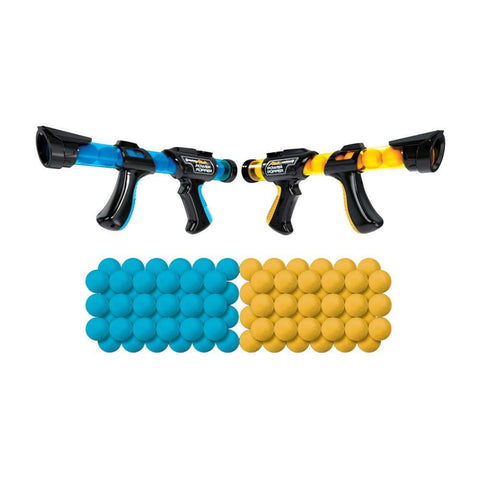 - Includes 2 rapid-fire atomic power poppers and 84 soft foam balls - blue and orange