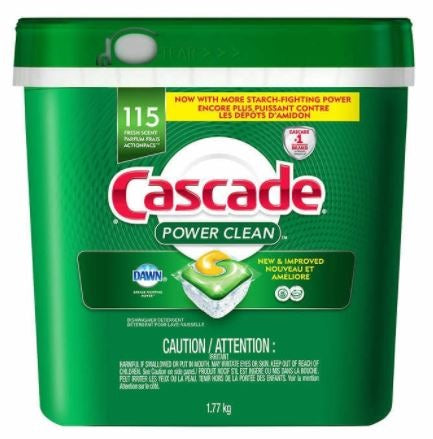 Cascade Power Clean’s best formula for starch fighting! Cascade Power Clean dishwasher detergent also powers away greasy residue for sparkling dishes in one easy-to-use pac. These ActionPacs combine the scrubbing power of Cascade and the grease-fighting power of Dawn to leave your dishes virtually spotless.