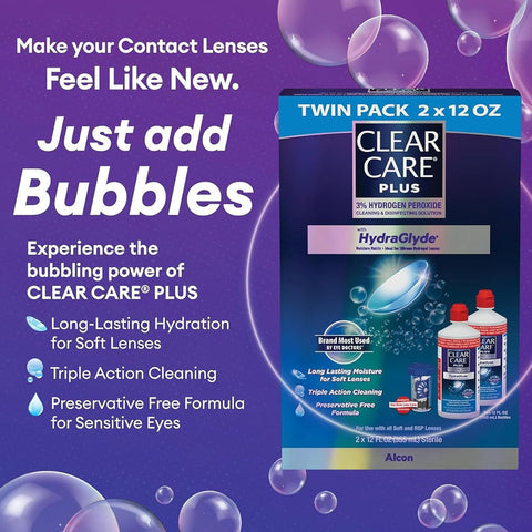 CLEAR CARE Proprietary Triple Cleaning Action Loosens Dirt, Deep Cleans, And Forms Bubbles That Enhance Protein Removal To Keep Your Lenses Feeling Like New. It Contains 3% Of Hydrogen Peroxide That Provides A Deep Clean With Bubbling Action.