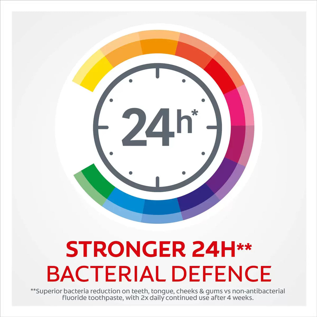 Colgate Total Whitening Toothpaste has a breakthrough formula with zinc and arginine, two elements found in nature, to provide superior proactive protection. The toothpaste effectively removes stains, leaving you with a whiter, confident smile. The formula in this teeth whitening toothpaste fights bacteria on your teeth, tongue cheeks and gums for 24 hours to keep your whole mouth healthy all day. This fluoride toothpaste protects against cavities, plaque, gum problems, sensitive teeth, enamel damage and staining. In addition, Colgate Total Whitening Toothpaste freshens your breath for the ultimate confidence and a dazzling smile.