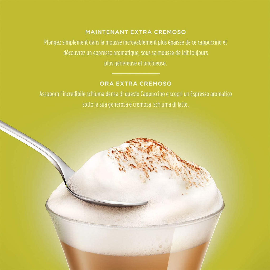 - An Italian icon: the rich and bold aromas of an intense espresso meet the smooth taste and creamy texture of whole milk froth. It comes in two capsules, one for the espresso and one for the whole milk