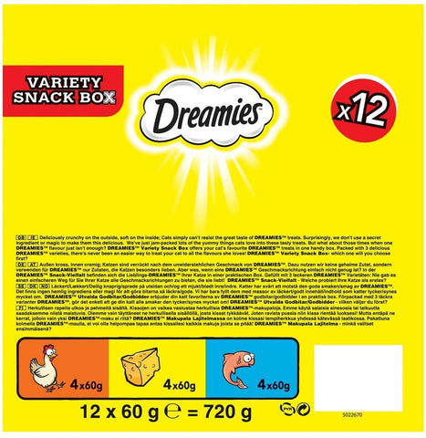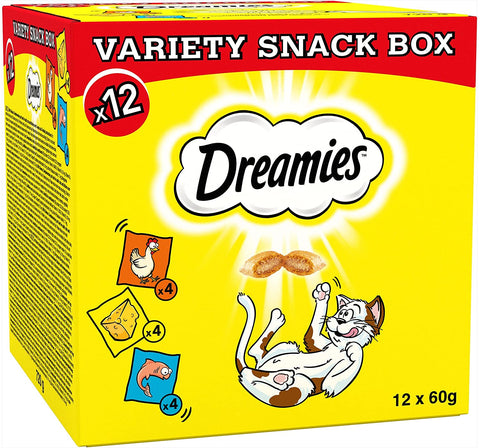 Dreamies Cat Treats Variety Pack, snacks with chicken, salmon and cheese, 12 X 60 g