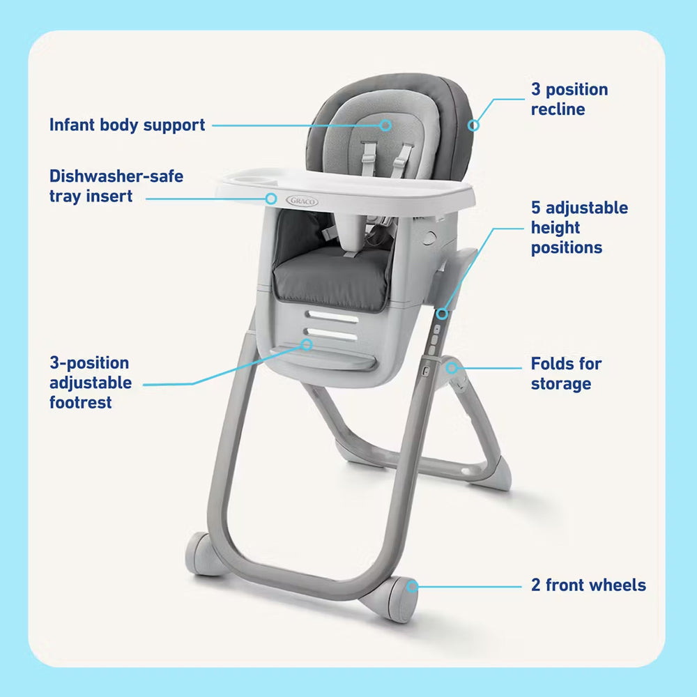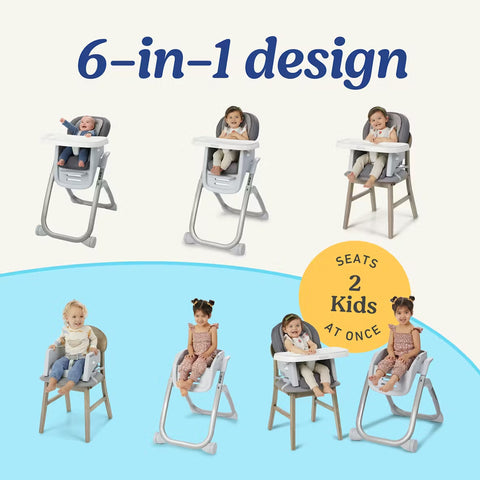 - 6-in-1 Convertible Design – Transforms from infant high chair to traditional high chair, booster seat, toddler booster, youth stool, and more for years of use.
