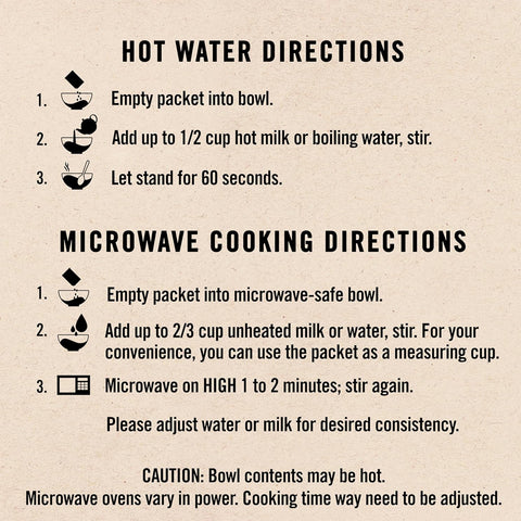 • 100% Whole Grain Oats — made from quality whole grain oats with no artificial flavors or colors.