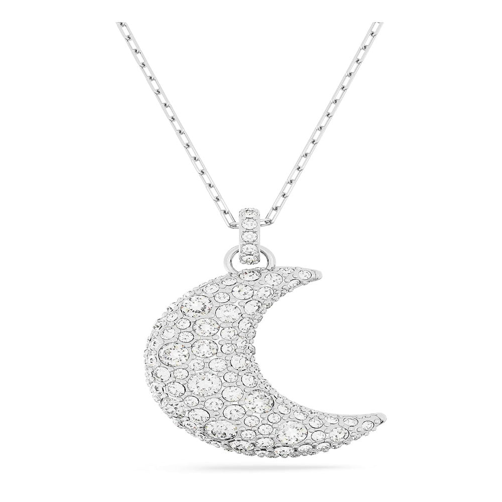 SWAROVSKI Luna Pendant, Moon, White, Rhodium Finish, One Size, Brass, Cubic Zirconia-5666181