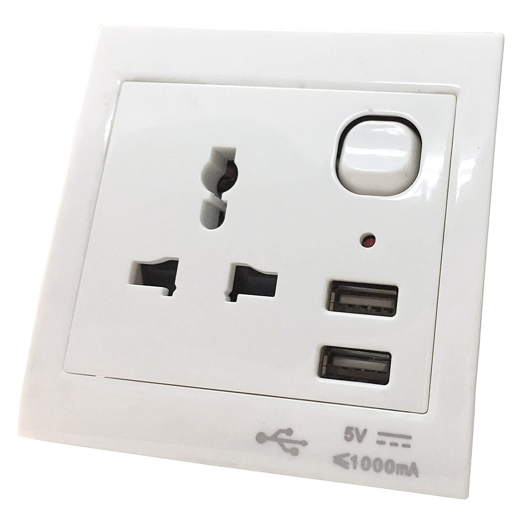 USB Wall Socket with Dual USB Charging Port Wall Charger 5V- 1000mA,2000mA (White).