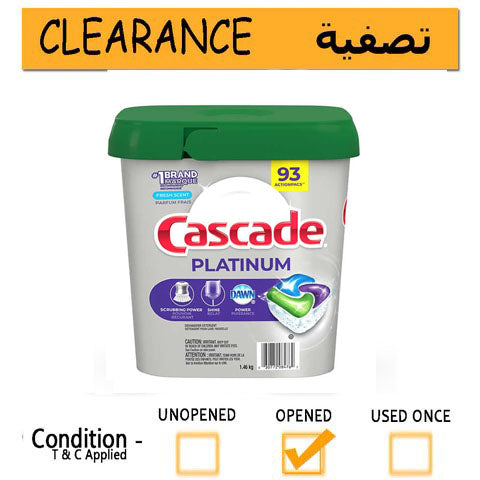 Cascade Platinum Dishwasher Detergent Actionpacs, 93-Count - 1.46Kg -- CLEARANCE
