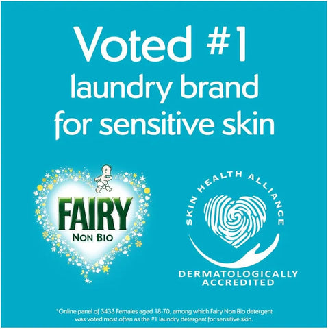 • Voted No.1 Laundry Brand for Sensitive Skin (Online panel of 3327 females among which Fairy Non Bio detergent was voted most often as the #1 detergent for sensitive skin)
