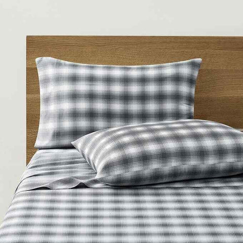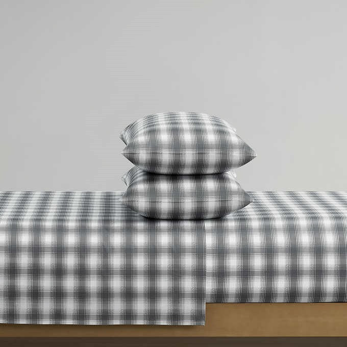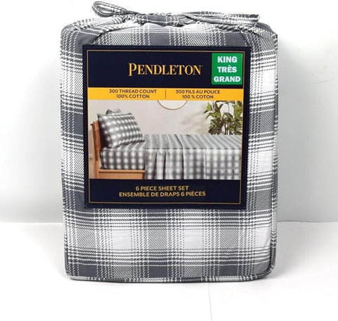 Pendleton 300 Thread Count Cotton King Size Bed Sheet Set Pack Of 6 (Lakeview Plaid Gray-Blue)