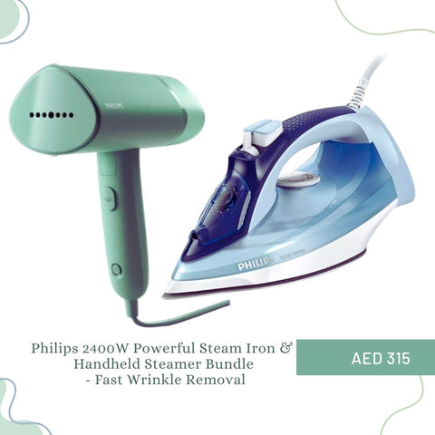 Philips 2400W Powerful Steam Iron & Handheld Steamer Bundle - Fast Wrinkle Removal